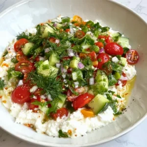 Fast forward to today, and I crave that same simplicity and comfort on hectic weeknights or while hosting a laid-back gathering. This Cottage Cheese Salad is not only a perfect, no-cook dish for those hot days, but it’s also an incredible way to celebrate the vibrant produce of the season. Easy and fresh, it’s a delightful addition to any meal—ideal for a quick snack, a refreshing side, or paired with pita chips for a cozy bite. This is one you’ll definitely want to pin for later!