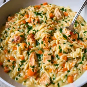 There’s something magical about a big bowl of creamy comfort food that wraps you in warmth like a favorite blanket on a cold evening. If you’re like me, certain flavors transport you back to cherished moments in the kitchen—like the comforting scent of chicken pot pie bubbling in the oven on a chilly day. This Creamy Chicken Pot Pie Orzo encapsulates that nostalgia, delivering a cozy, golden dish that is perfect for sharing with family or savoring solo.