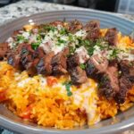 Some dinners just make you stop mid-bite and smile, and this Creamy Queso Rice with Juicy Steak Strips is one of them. Imagine tender slices of seared steak laid over a bed of golden, fluffy rice, all smothered in a velvety homemade queso sauce that melts into every grain. It’s rich, savory, and bursting with flavor—like your favorite restaurant dish but made right at home.