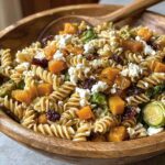 There’s something about fall that calls for comfort and color in every meal — and this Fall Pasta Salad with Butternut Squash and Brussels Sprouts brings both beautifully together. It’s a dish that feels indulgent yet nourishing: roasted seasonal vegetables, crisp apples, tangy goat cheese, and tender pasta all tossed in a maple Dijon vinaigrette that perfectly balances sweet and savory.