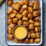 Soft, golden pretzel bites that are crispy on the outside and fluffy on the inside, perfect for dipping in cheese sauce.