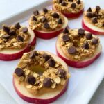 Wash and core the apples. Slice into ¼-inch thick rings. If you don’t have an apple corer, cut out the center after slicing. Spread peanut butter on one side of each apple slice. Sprinkle granola evenly over the peanut butter, pressing gently so it sticks. Top with chocolate chips. Feel free to add extras like honey drizzle or a sprinkle of cinnamon. Arrange the loaded apple slices on a serving plate and enjoy immediately while they’re fresh and crunchy.