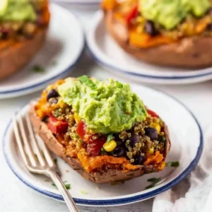 Today, I’m excited to share my Mexican Quinoa Stuffed Sweet Potatoes, an easy weeknight dinner that’s packed with flavor and goodness. These delightful boats are loaded with savory quinoa, black beans, and a hint of spice, all gently cradled in a sweet potato shell, and topped with luscious guacamole. Trust me—you’ll want to pin this recipe for later!